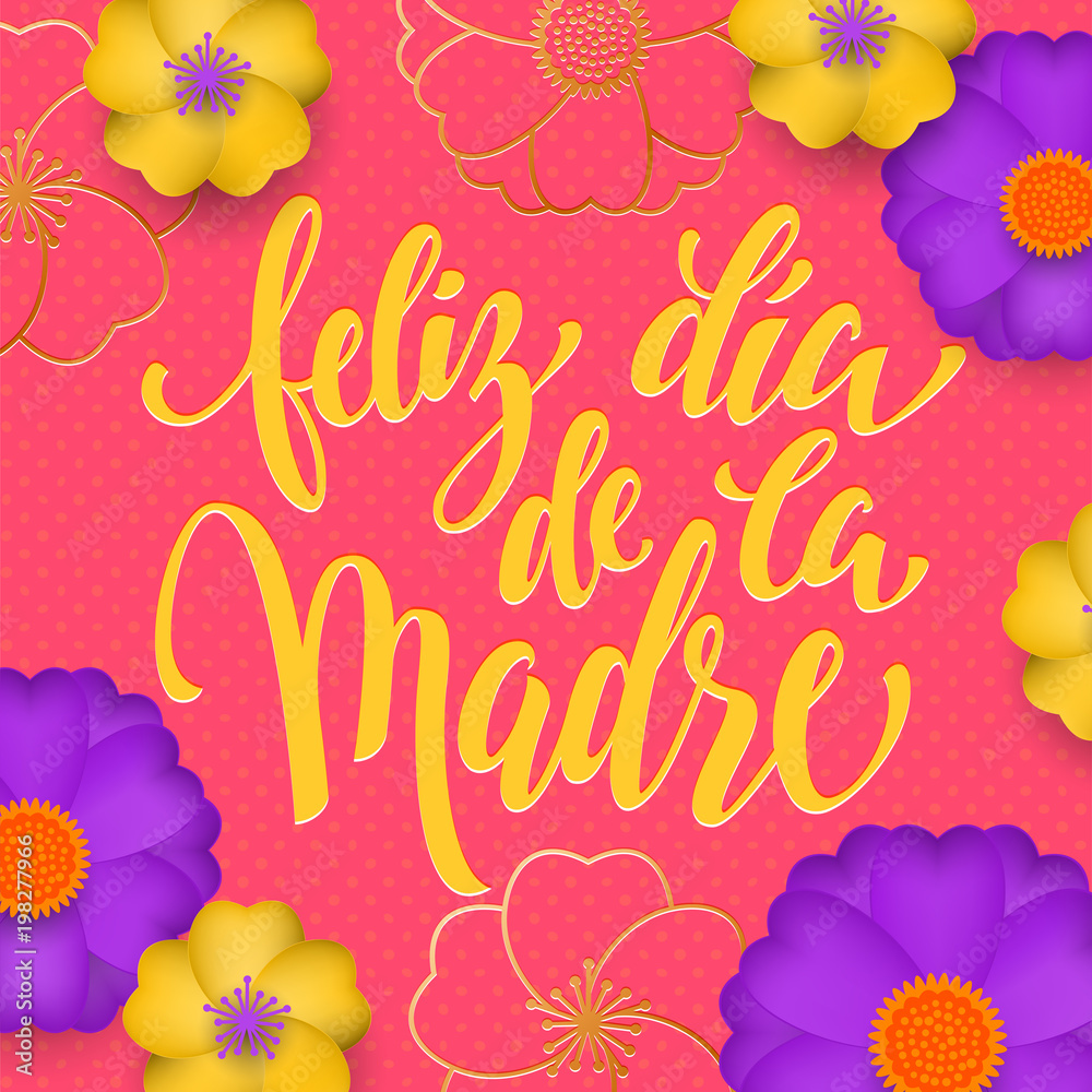 Mothers Day In Spanish Greeting Card Of Red Flowers Pattern And Gold Text Feliz Dia De